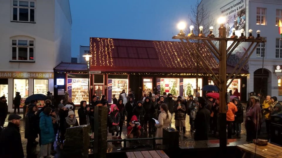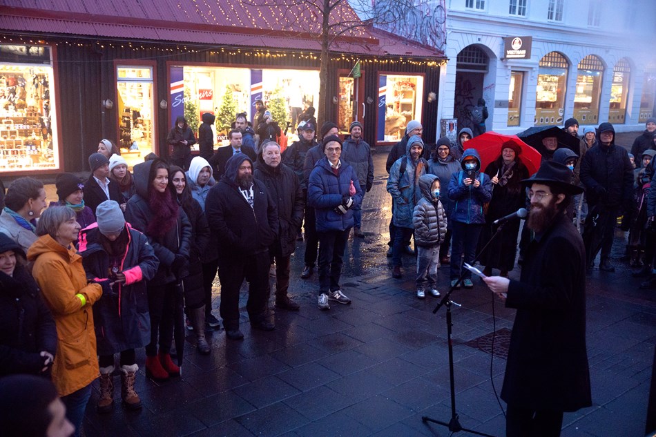 Eliza Reid forsetafrú tekur þátt í upphafi ljósahátíðar gyðinga, hanúka, með því að tendra fyrsta menóruljósið í athöfn á horni Skólavörðustígs og Laugavegs. Þetta er fjórða árið í röð sem Íslenski gyðingasöfnuðurinn á Íslandi fagnar ljósahátíðinni í miðborg Reykjavíkur og leiddi Avi Feldman rabbíni athöfnina.