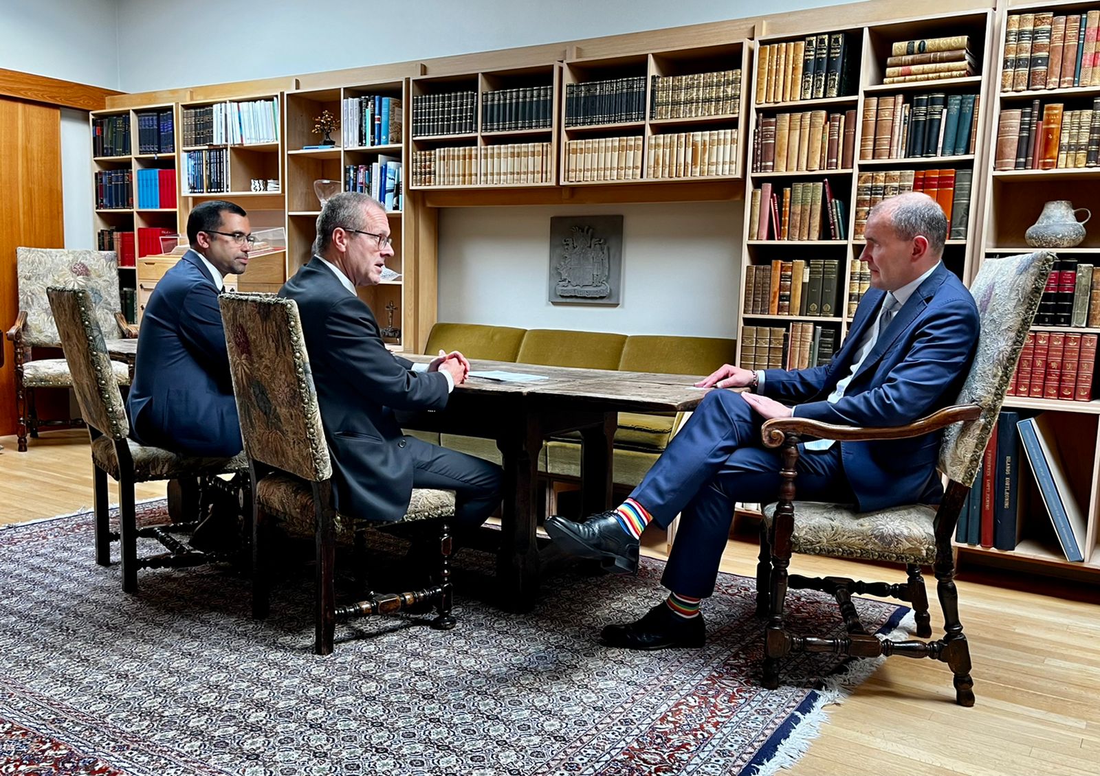 Forseti á fund með dr. Hans Kluge, forstjóra Evrópuskrifstofu Alþjóðaheilbrigðismálastofnunarinnar (WHO). Hann er hér á landi vegna alþjóðafundar Rótarýsamtakanna en þau hafa stutt dyggilega bólusetningarátak til að vinna bug á mænusótt í heiminum. Rætt var um þann atbeina á fundinum en einnig aðgerðir vegna Covid-19 og stuðning íslenskra stjórnvalda við heilbrigðisþjónustu í Úkraínu og annan atbeina í þágu úkraínsku þjóðarinnar.